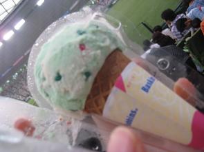 「ホッピングシャワー」 パチパチクリーミーで変な味 口の中が駄菓子のわたパチ食べたときみたいになるのです ぱちぱちをシャーベットとかに混ぜてみ売ってみて欲しい・・・ 応援してた巨人は 延長戦で負けちゃいました。 ホームランは観れないし・・・