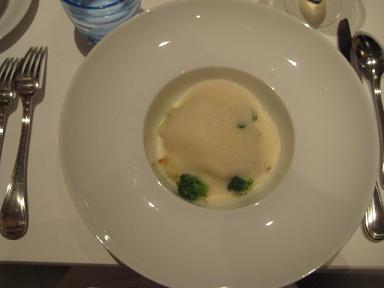 的鯛とブロッコリイなどと甲殻類のムースリイヌです