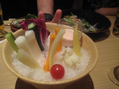 野菜スティックのディップはクリームチーズ明太子のお味。