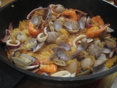 おうち帰って晩御飯にパエリア作りました