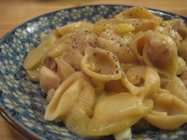 鶏とキャベツとジャガイモのコンキリエ作ったよ