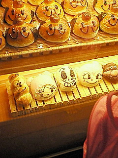 店内では、たとえばメロンパンナちゃんが焼けて店頭に並べるとき、店員さんが
