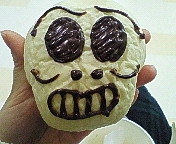 見た目も結構ホラーですが、パン生地はしっとりしていて、中にはヘーゼルナッツ風味のチョコクリームがっ♪